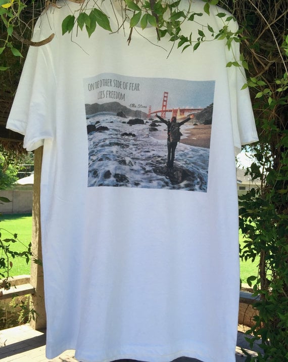 These comfy tees were made in honor of my aunt Ellie Stone. 10 % of the proceeds will go to an animal shelter in CA of her choice.